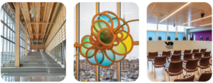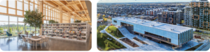 Des parois de verre translucides Solera renferment le grand volume de la salle de lecture. Elles sont composées d’unités scellées de type alvéolées remplies d’aérogel, un produit qui confère une résistance thermique accrue, tout en assurant une lumière diffuse sans éblouissement.