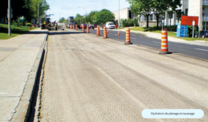 • Le planage et le repavage s’effectuent en retirant en tout ou en partie l’ancien revêtement d’enrobé bitumineux de la route. Ceci permet d’éliminer plusieurs déficiences de la surface de la chaussée. Elle peut aussi contribuer à corriger la couronne et l’uni de la couche de roulement ainsi qu’à rétablir les problèmes causés par des contraintes de seuil (trottoirs et bordures).