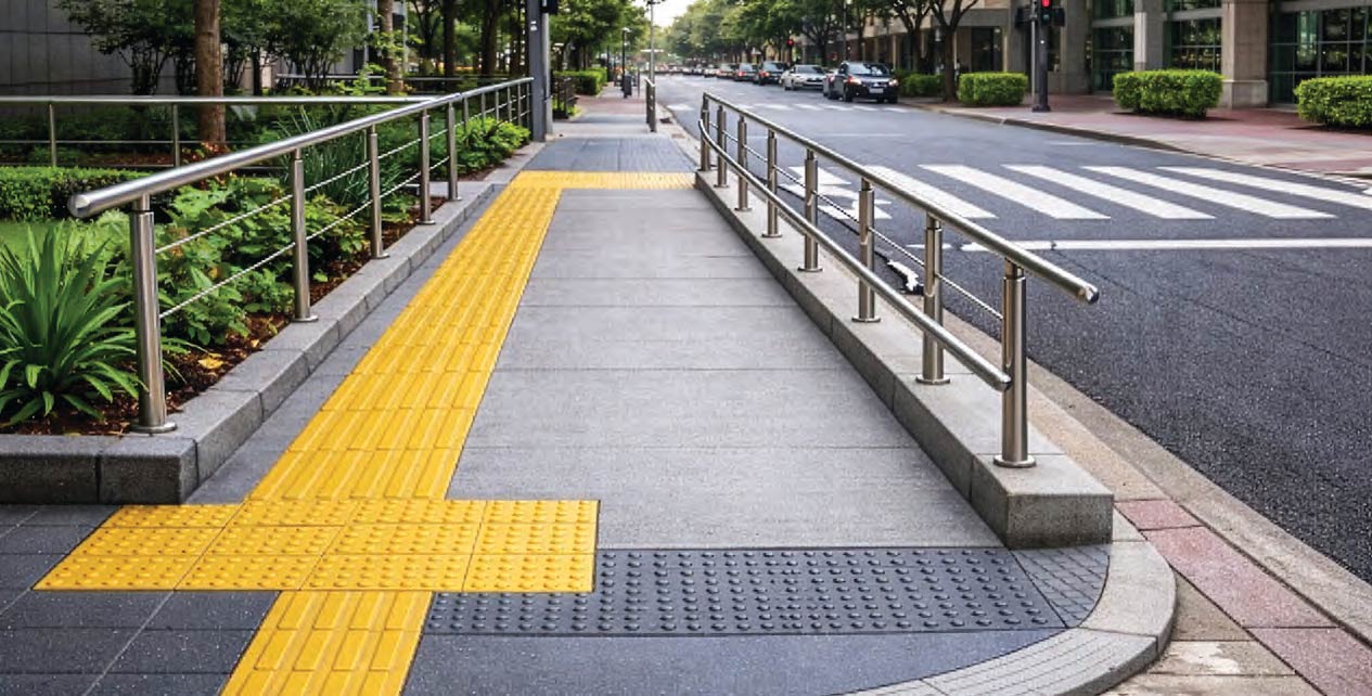 À Montréal, les projets de réfection de rues incluent systématiquement des interventions en accessibilité universelle : abaissées de trottoir normalisées, surfaces tactiles, éclairage amélioré et continuité des parcours piétonniers. Cette approche est directement alignée sur le cadre de référence de l’OPHQ et sur les plans municipaux d’accessibilité.