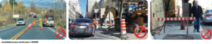 En effet, l’adaptation des dessins normalisés inclus dans le Tome V est presque inévitable lors de travaux en milieu urbain puisque ceux-ci ne tiennent pas compte des réalités du milieu telles que la mobilité active, les intersections rapprochées, le stationnement sur rue, les entrées charretières, les zones de livraison, les voies réservées, etc. Il faut toujours garder en tête que ce n’est pas parce que la signalisation de travaux respecte les normes qu’elle est sécuritaire.
