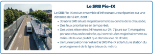 Le Service rapide par bus (SRB) du boulevard Pie-IX est un projet de transport collectif structurant et performant, intégré à la reconstruction et à la requalification du boulevard Pie-IX, entre le boulevard Saint-Martin à Laval et la rue Notre-Dame à Montréal. Étant donné que les autobus circulent dans un corridor au milieu du boulevard Pie-IX, advenant une panne d’un autobus ou un incident, le SRB devait avoir un système de signalisation d’urgence qui permettrait aux véhicules de quitter de façon sécuritaire le corridor. Un système de signalisation d’urgence connectée a été conçu à cet effet.