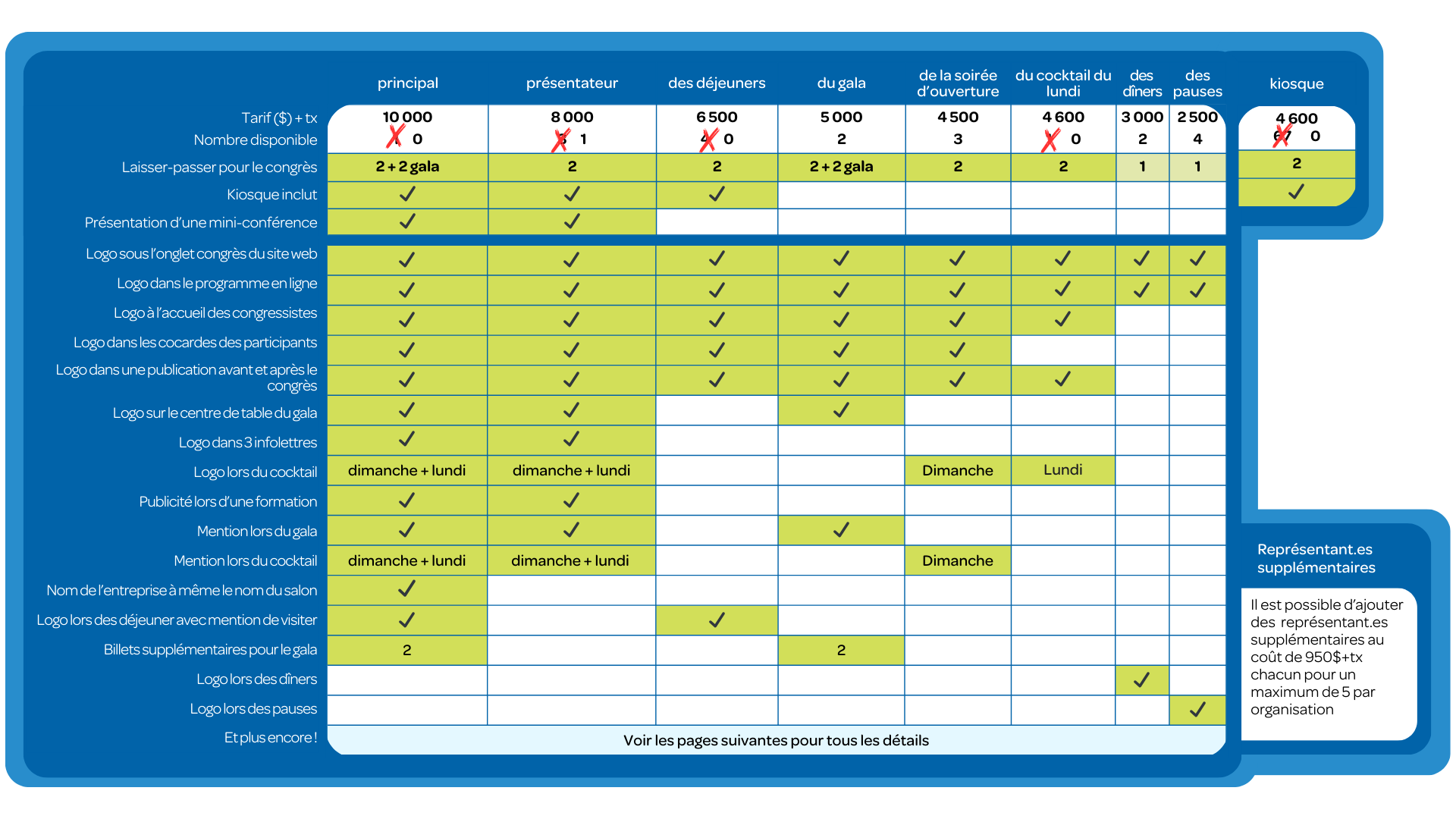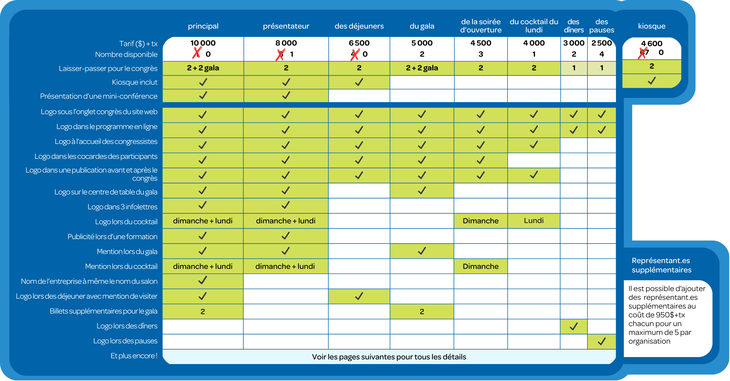 - Possibilité de mettre un roll-up ou un oriflamme de votre entreprise à l’entrée du congrès