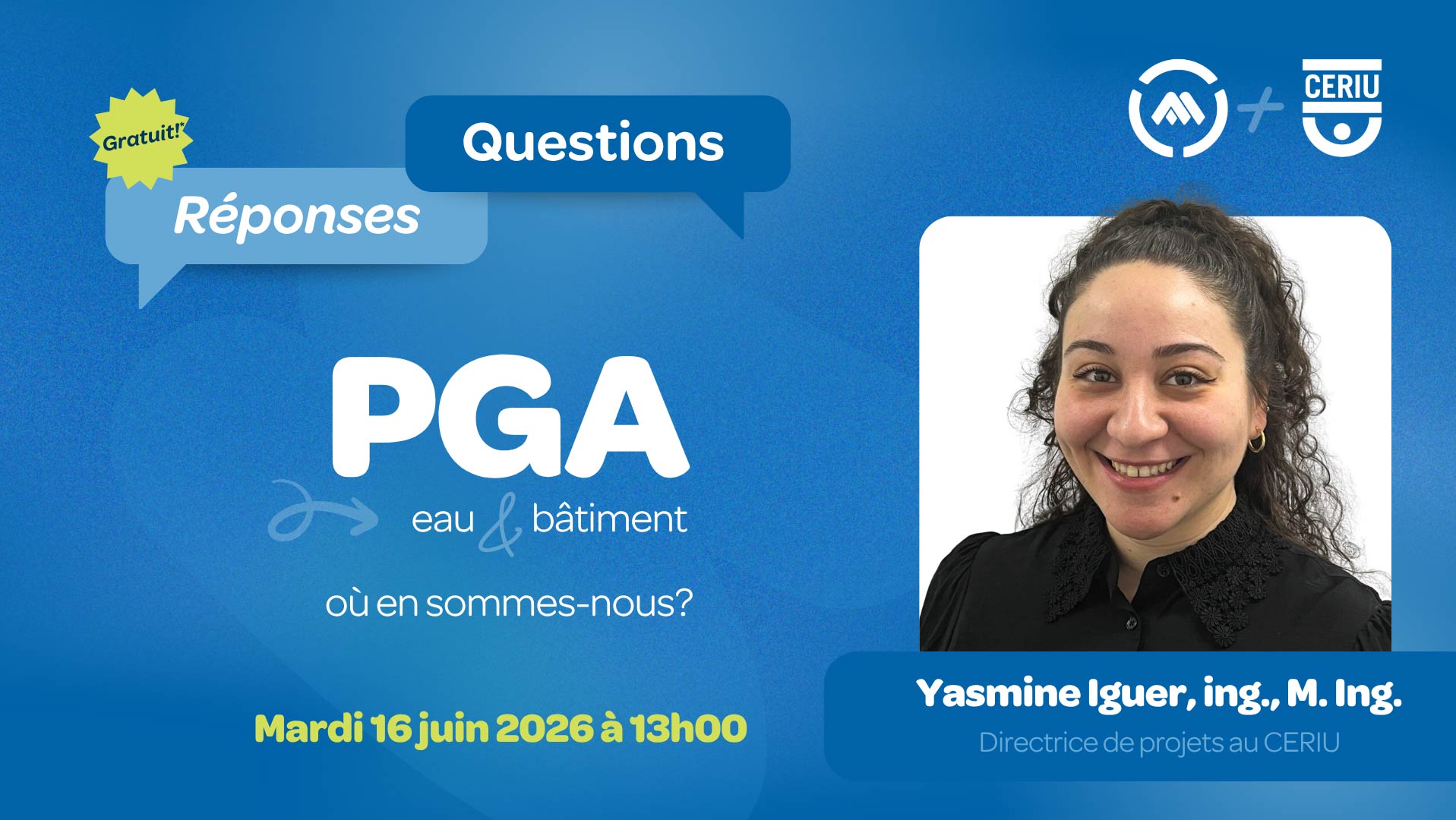 Le 16 juin, la communauté de pratique en gestion des actifs accueillera Yasmine Iguer, qui viendra dresser un état des lieux sur le PGA Eau et Bâtiment.